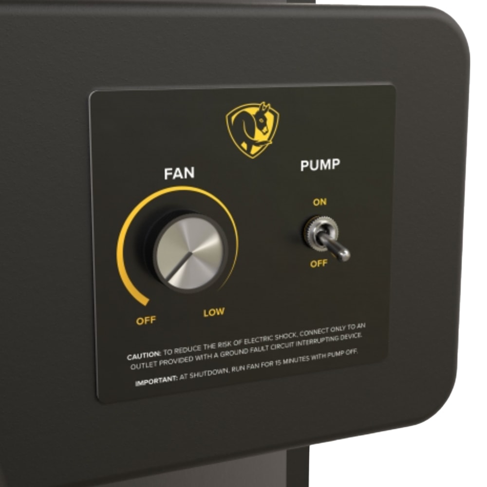 The 400 model includes a 36” diameter fan (twice the size of the 300 model), a 46-gallon water reservoir, and a direct-drive motor with variable-speed controls, enabling precise cooling for a fraction of the cost of traditional air conditioning.