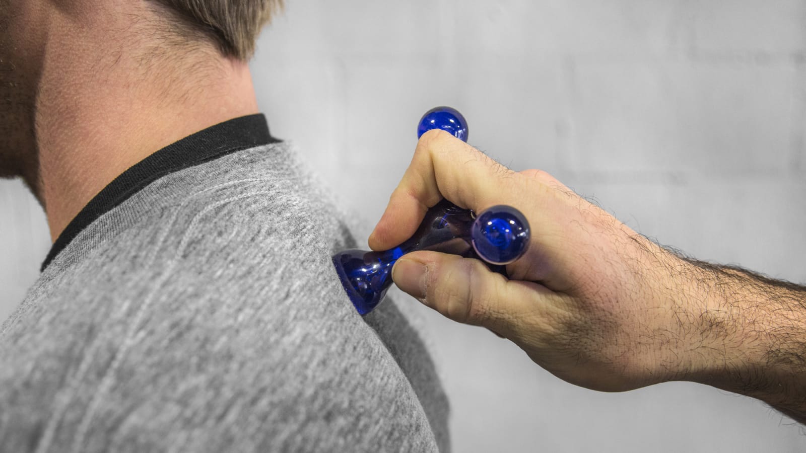 The knobs of the four legs of the Jacknobber® II massage tool can be used in many ways to apply deep pressure to muscular trigger points and tension. The smaller knobs provide more intense pressure while the larger knobs provide a gentler pressure. Use one knob at a time to press deeply into imbedded trigger points; use two knobs at a time on either side of the spine. Arguably this is the most satisfying and easy to use hand held massage tool available.