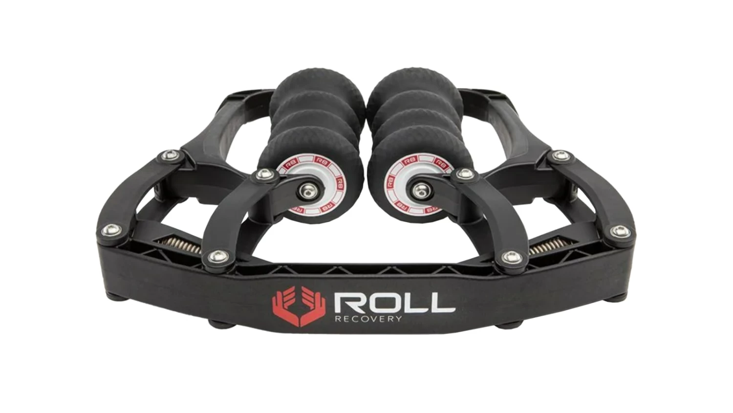 The newly redesigned R8 deep tissue massage roller from Roll Recovery features an improved spring configuration, stainless steel hardware fasteners, bearing integration in all pivot points, soft touch handles, and interchangeable R-8-Inserts for a customizable feel.