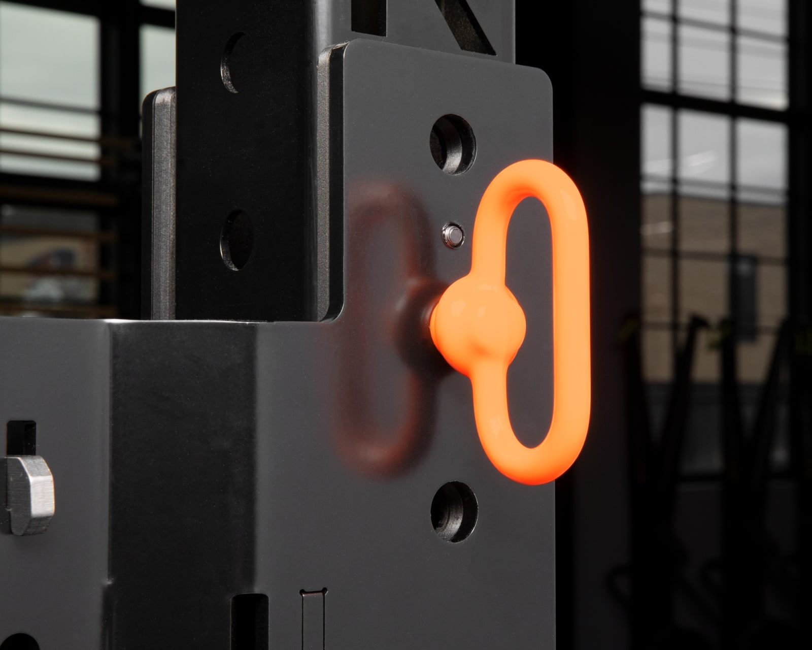 Compatible with any Monster Lite Series power rack or rig,* the AML-2 Rogue Adjustable Monolift gives athletes a way to comfortably unrack and rerack heavy weight without having to worry about walking the bar out during squats or avoiding J-cups while benching. With Version 2.0, we’ve upgraded the strength of the attachment and re-engineered the center of mass around the handle, removing unnecessary weight and enabling easier, one-hand adjustments. A new stainless steel key can also lock the Monolift’s jaws in place, further simplifying adjustments and allowing the hooks to be utilized as traditional J-cups.