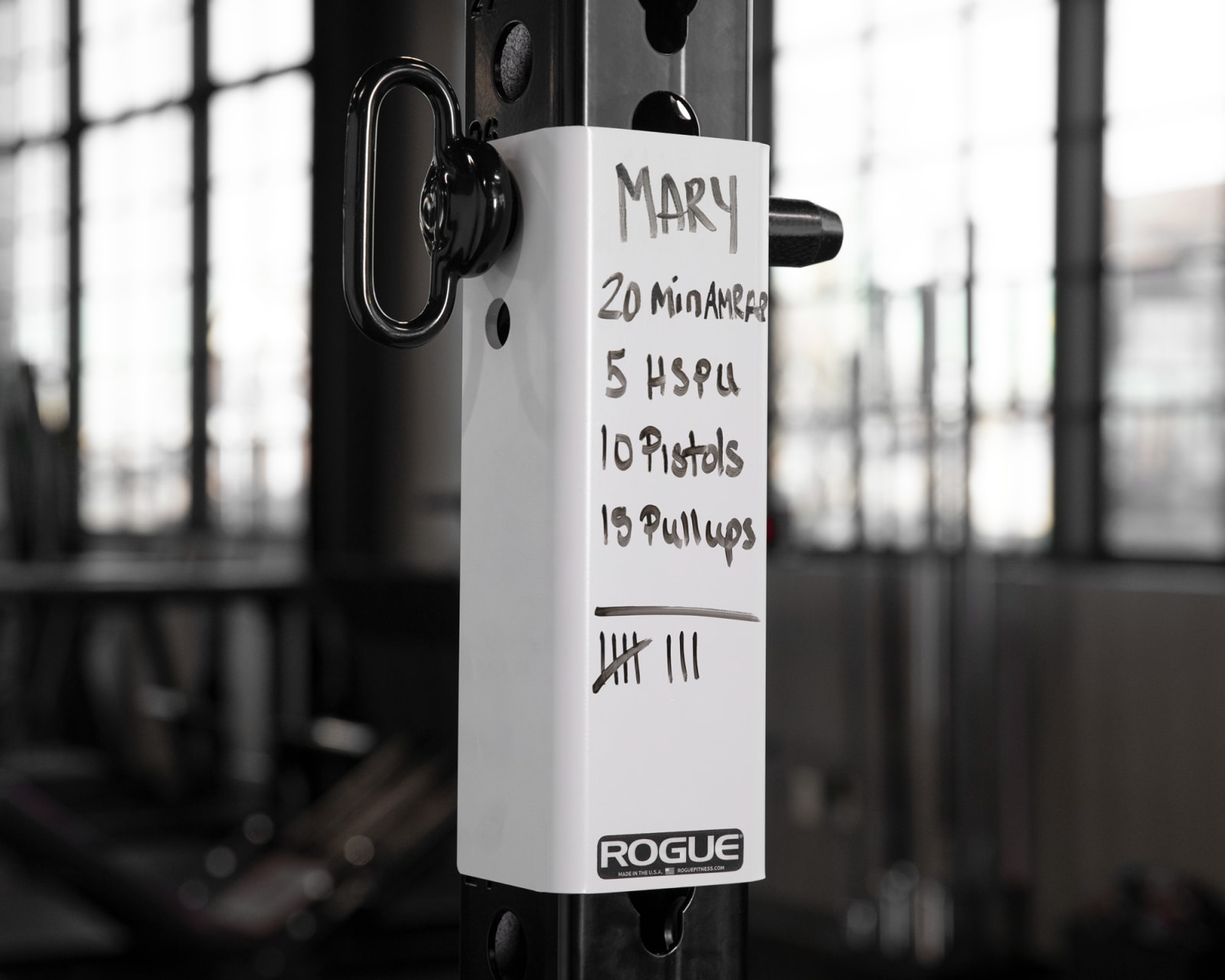 This version of the Rogue Dry Erase Channel attaches exclusively to the 3×3” uprights of a Monster Series rack or rig. The channel has a special dry erase powdercoat that allows it to act as a whiteboard.* This is great for keeping track of weights or rounds at the gym.