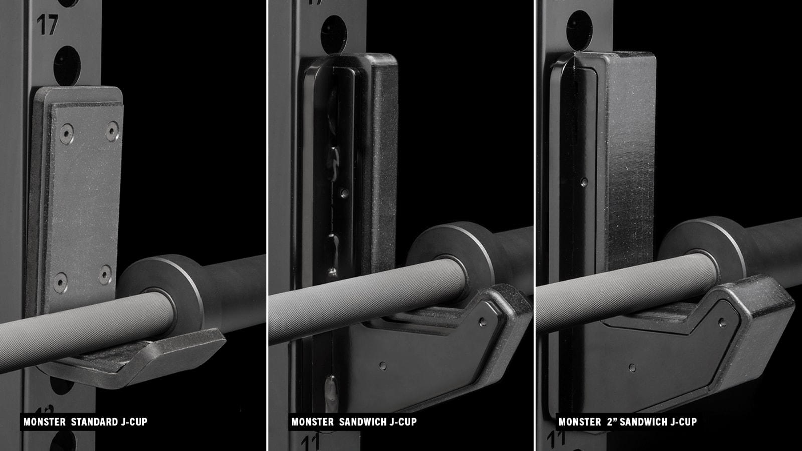 Rogue offers three types of J-Cups for use with your Monster Series rack or rig. You can compare the options below and select your preference and quantity from the order menu on this page. All J-Cups are sold in pairs.