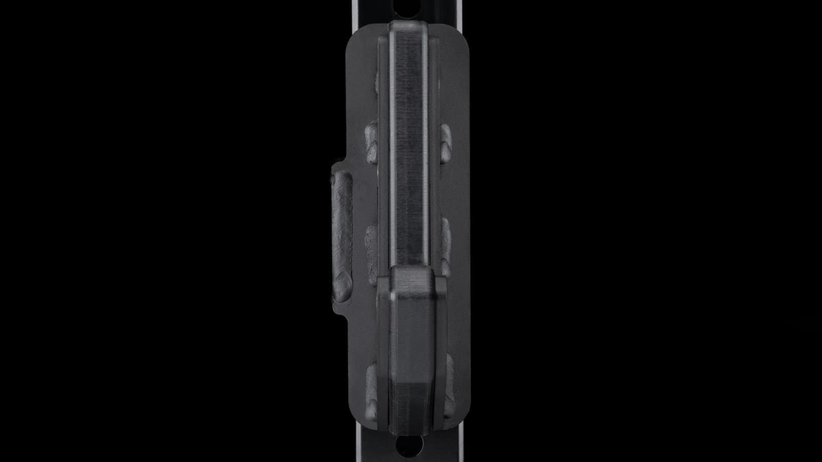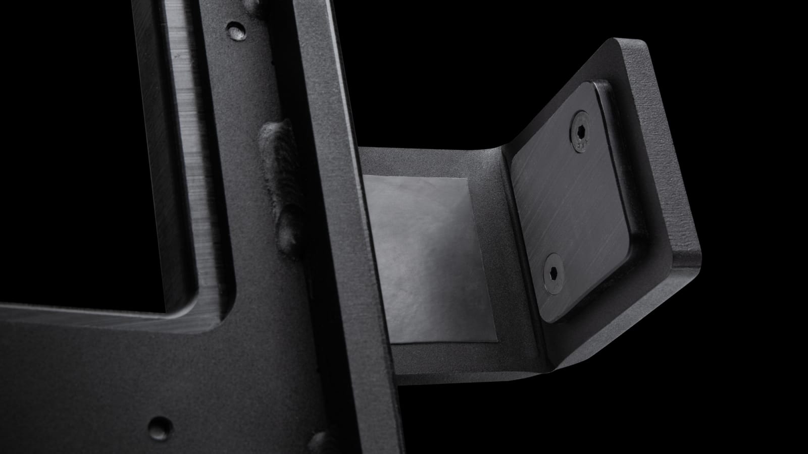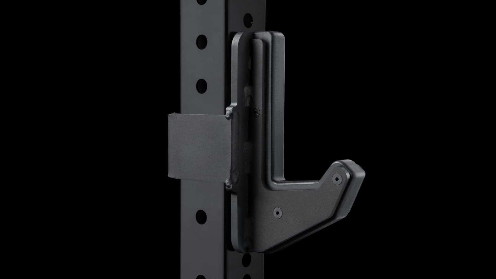 - Our premier model; the side plates fit into a recessed, machined plastic core (2″ wide) to stop metal-to-metal contact. The hardware (that connects the plastic to the side plates) is also recessed, preventing the bar or a user’s hand from scraping against them. Welds are inside the side plates for a clean edge, and UHMW plastic is featured on the clasp and back plate to prevent damage to the uprights.