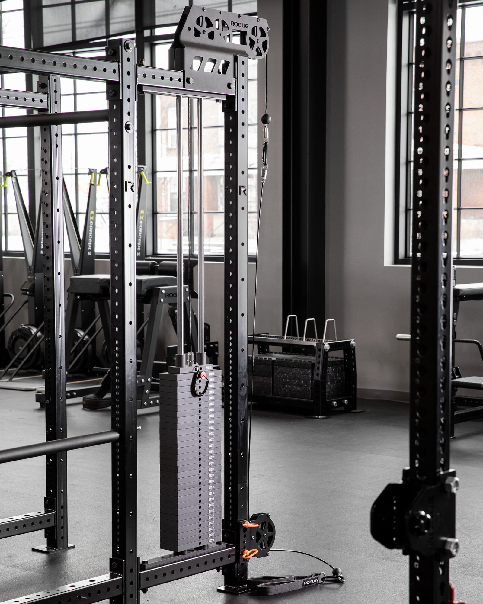 This unit can be used with with Band, Plate Load, and Weight Stack styles of the Slinger, as well as 90”, 100”, and 108” ML power racks. Once assembled, it can be mounted to an upright using the included pair of removable detent pins, or permanently installed with bolts (not included). Users can then easily move the Solo Pulley Attachment vertically along the upright depending on their own height and which exercise they wish to perform.