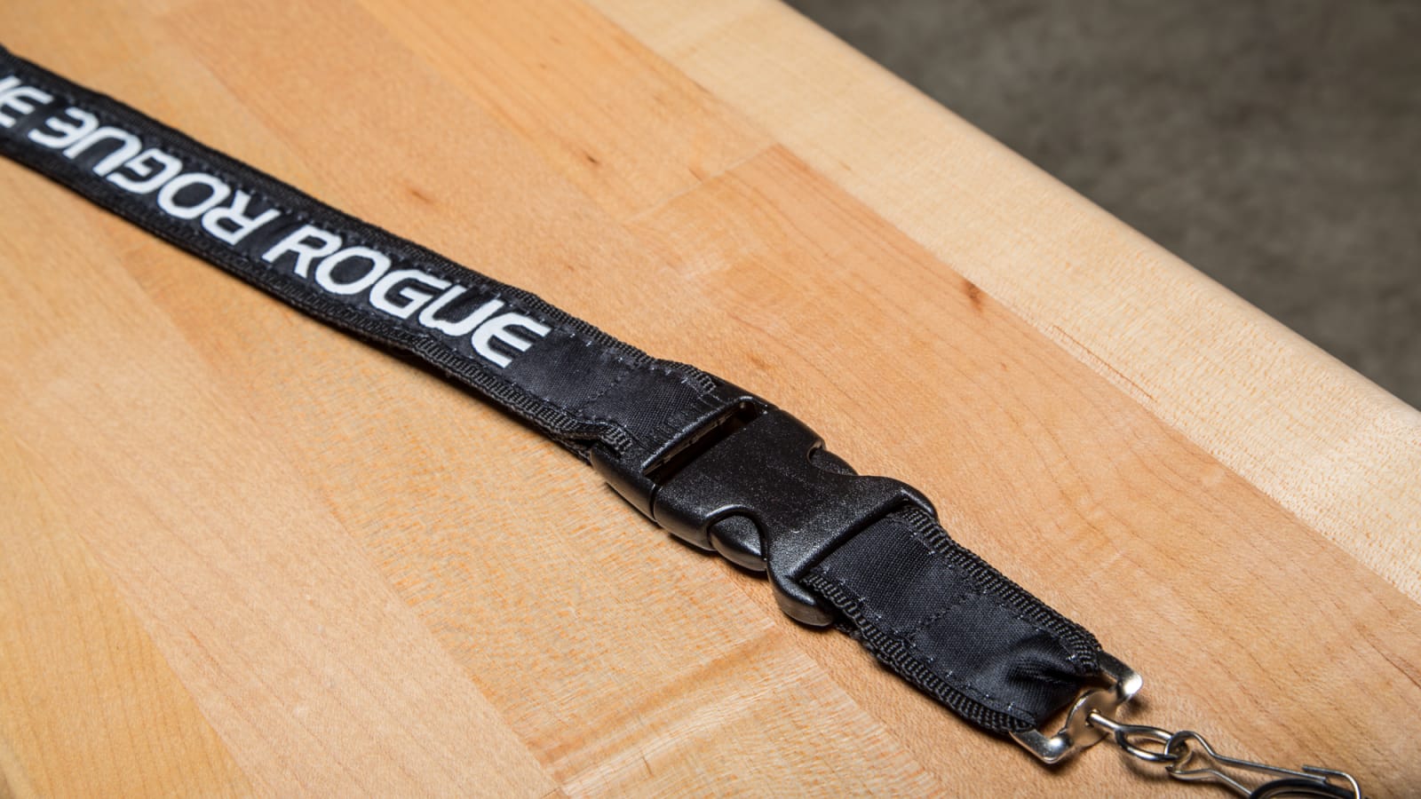 Rogue’s heavy-duty nylon lanyard includes a secure, detachable plastic buckle and a metal hook for attaching a set of keys, an ID card, a whistle, etc. The Rogue logo is featured down the full length of the lanyard in white on black.