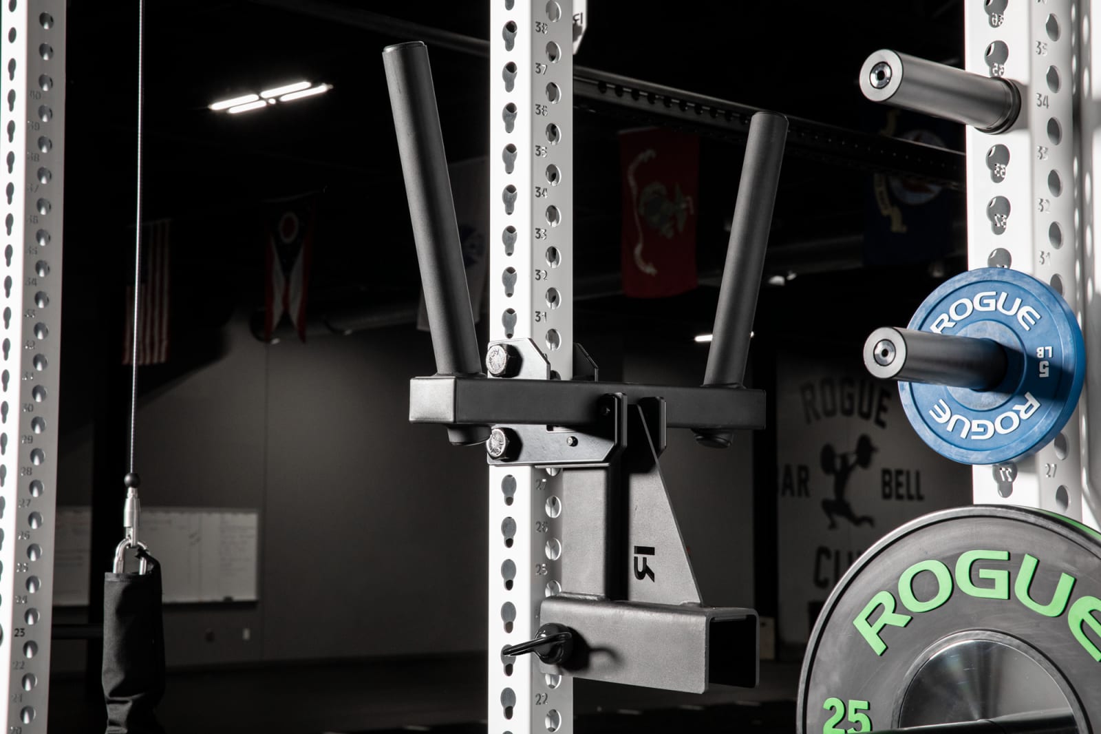 Compatible exclusively with Rogue’s 3×3” Monster Racks and Rigs, the Monster Matador enables the instant set-up of a sturdy, fully adjustable dip station.