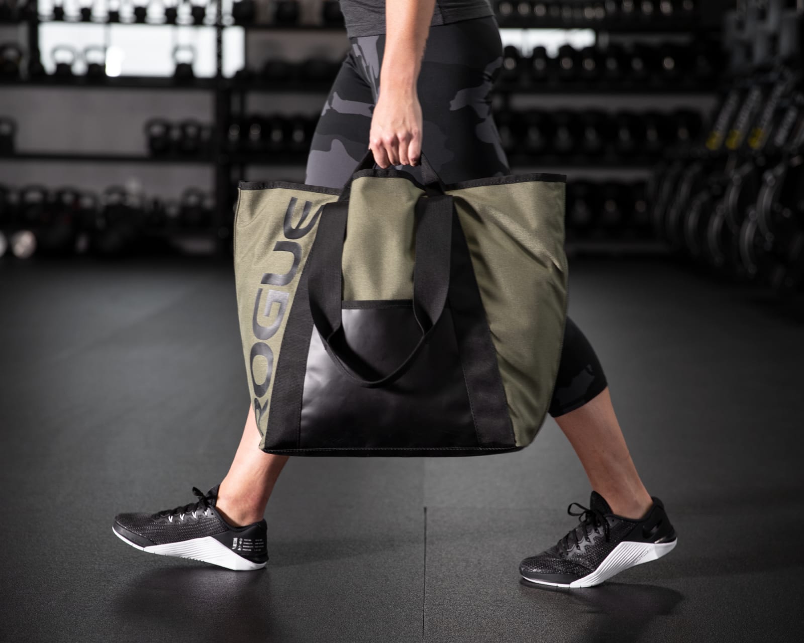 Customers can choose from two color options: Black and Olive Green. Both versions of the tote include the Rogue logo printed vertically down one side of the bag.