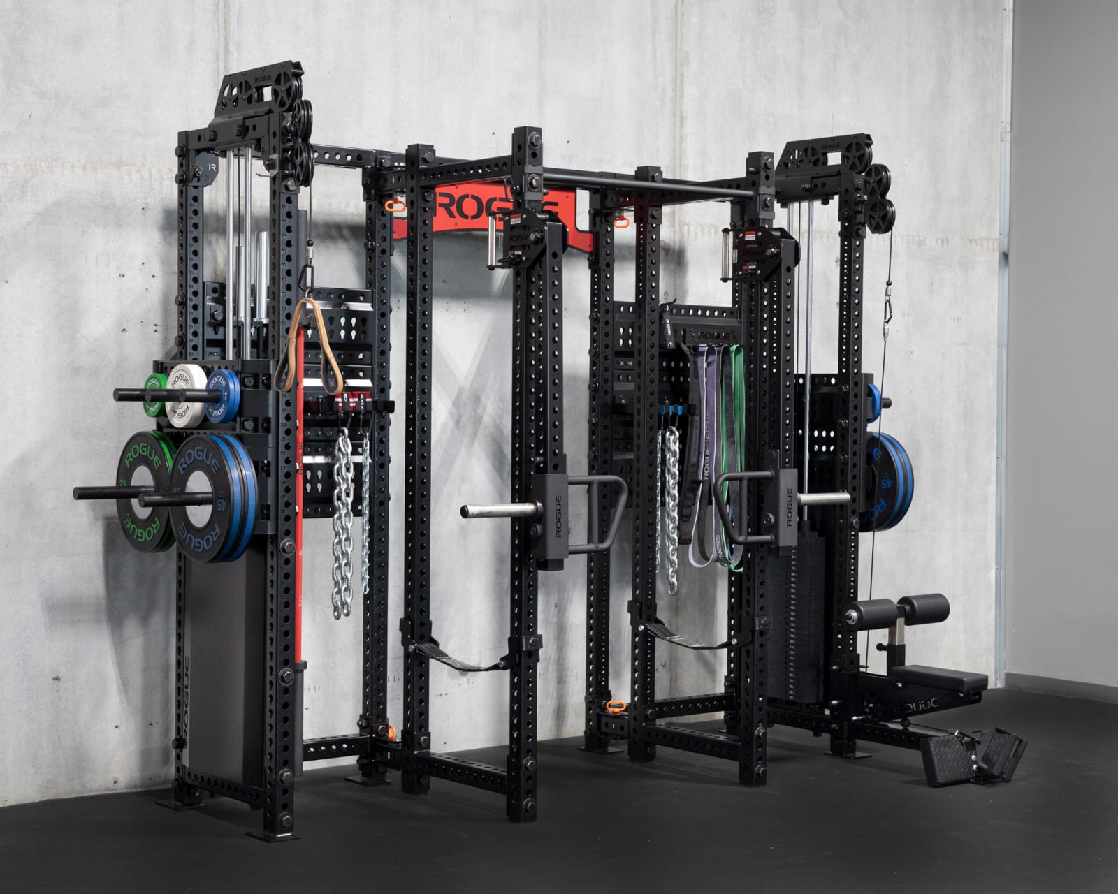 Our design combines the space-efficient Monster Fold Back Rack with two cable-pulley stations, enabling superior training versatility with almost limitless customization potential. No matter how you choose to configure it, this unique rig can consolidate your barbell movements, cable movements, and equipment storage into a single, all-in-one system, with sizing options suited to whatever your gym needs.