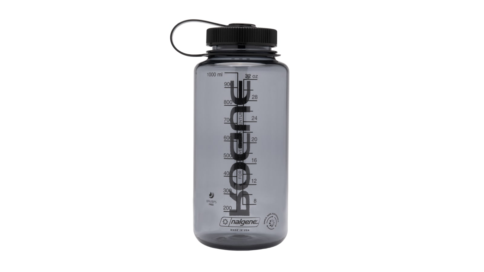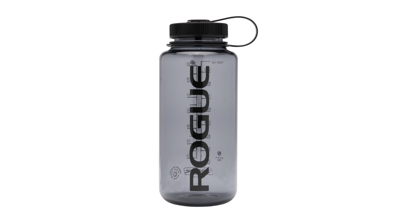 Available here in Smoke Gray with exclusive Rogue branding, the 32-ounce Nalgene Sustain is BPA-free, leak-resistant, dishwasher safe, and suited to fit most filtration units. You can track your fluid intake or measure out a mix using the convenient millimeter and ounce markings, and the wide-mouth design makes it much easier to add ice.