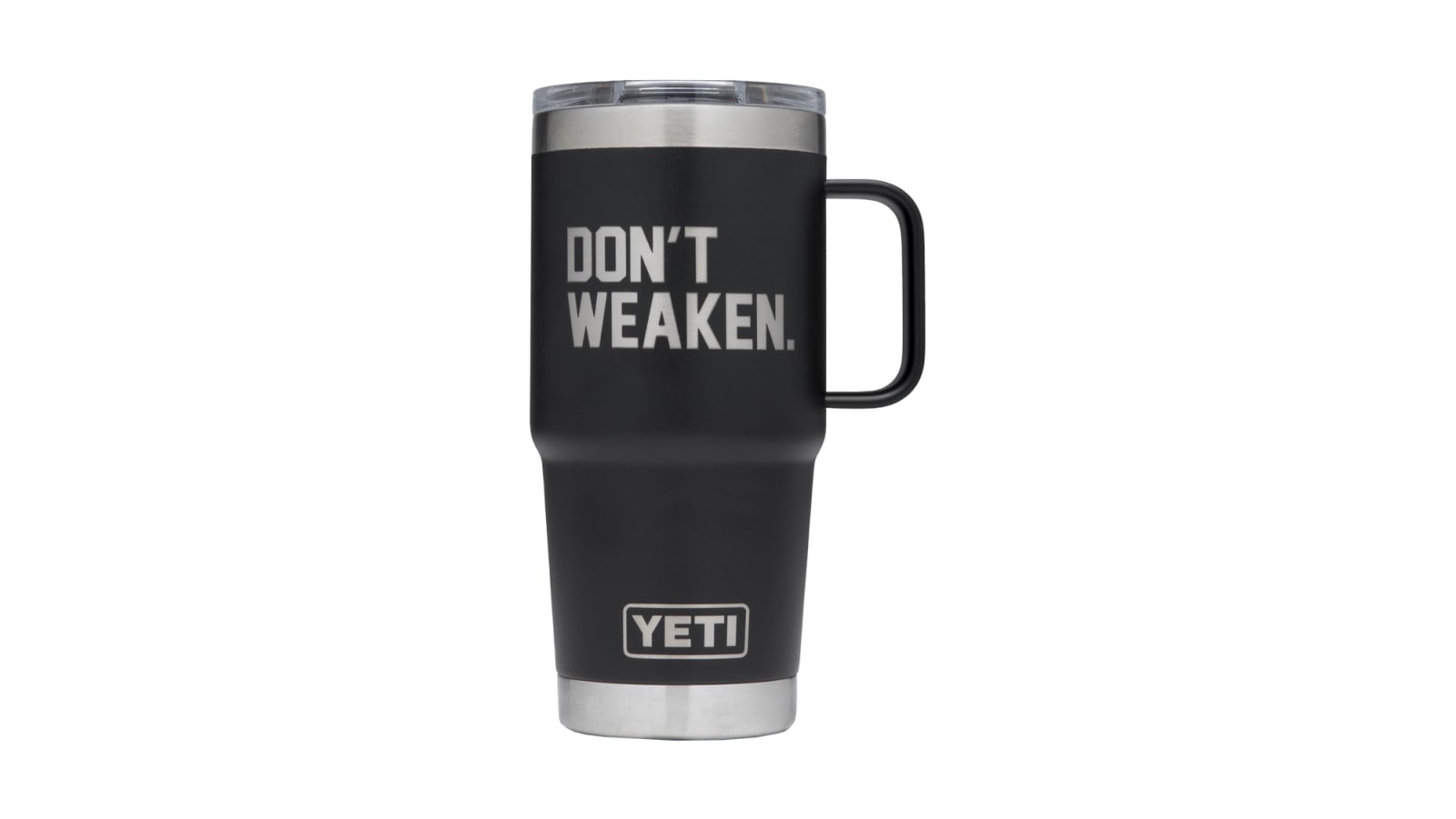 The YETI Rambler Travel Mug also includes a 360-degree welded handle and a condensation-preventing design. It’s engineered to keep cold drinks cold and hot drinks hot, but it is NOT designed for use with carbonated beverages or for storing food/perishables.